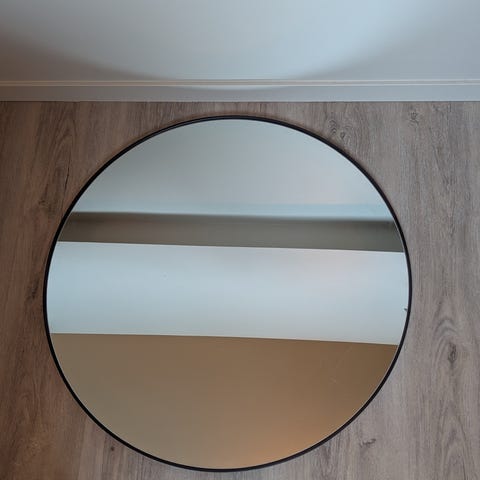 To runde speil ø 70 cm fra søstrene grene. Et har vært i bruk, men er som ny og en er fortsatt i pakken.