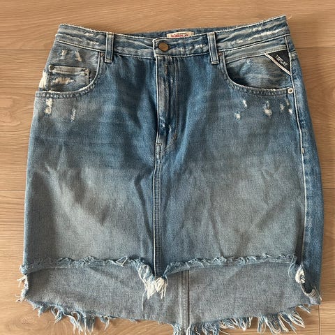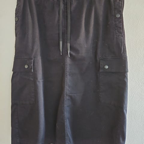 Replay svart kort skjørt med folder, laget av polyester i størrelse M for dame. Skjørtet har en enkel og klassisk design med glidelås på siden og liten logo detalj.