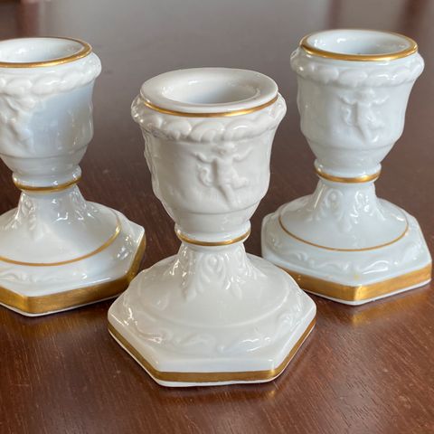 4 nydelige hvite lysestaker i flott porselen, Argos, fra Rutschenreuter, Germany.