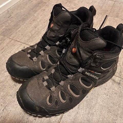 Merrell støvler i størrelse 43, farge svart. Støvlene har vanntett materiale og solid yttersåle med godt grep. Egnet for utendørs bruk og variert terreng.