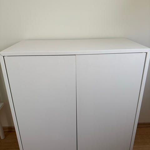 12 hvite glans dører, hvorav 4 med glass i. Til IKEA BESTå stamme. Dørene er 64x60 cm.