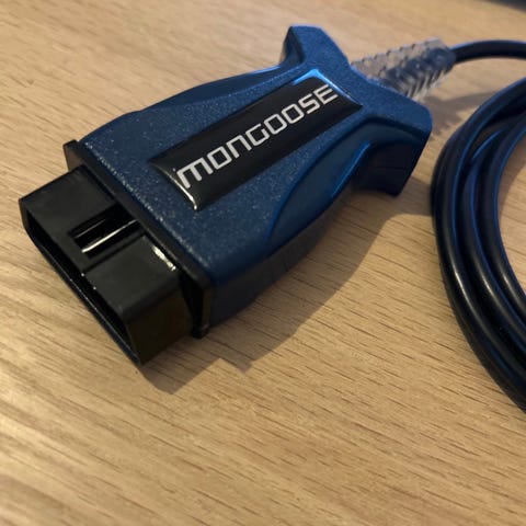 Komplett sett som vist på bildene, med DiCE Pro+ enhet, OBD-kabel, USB-kabel og programvare (DVD).