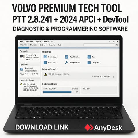 Selger Volvo DiCE Pro+ diagnoseverktøy brukt sammen med VIDA for feilsøking og diagnostikk på Volvo-biler.