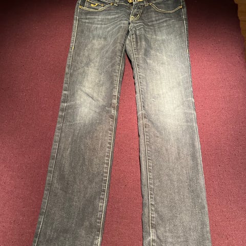 Jacob Cohën Denimbukse i grå farge, størrelse 38 for kvinner med midjemål W28. Laget av denim materiale. Buksen har klassisk femlommers design med glidelås og knapp i front.