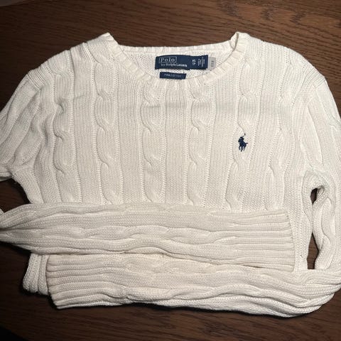 Polo Ralph Lauren Andre genser i størrelse XS for dame. Genseren er grå og laget av bomull. Den har hette og en liten brodert logo på brystet.