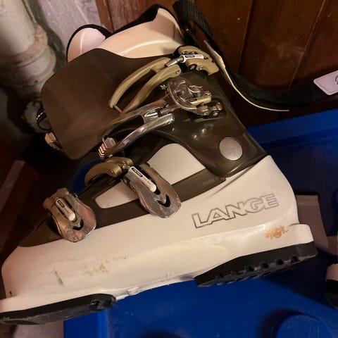 Skiene og skoene er lite brukt. Hele og fine.