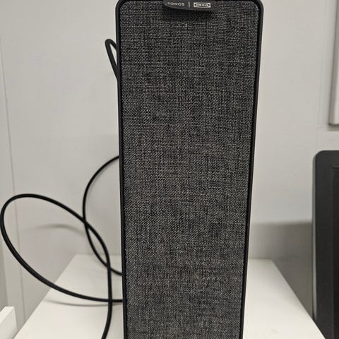 Sonos One høyttaler i svart farge. Kompakt trådløs høyttaler med integrert stemmestyring og støtte for flere lydkilder. Passer til bruk i hjemmet for streaming av musikk og lyd.