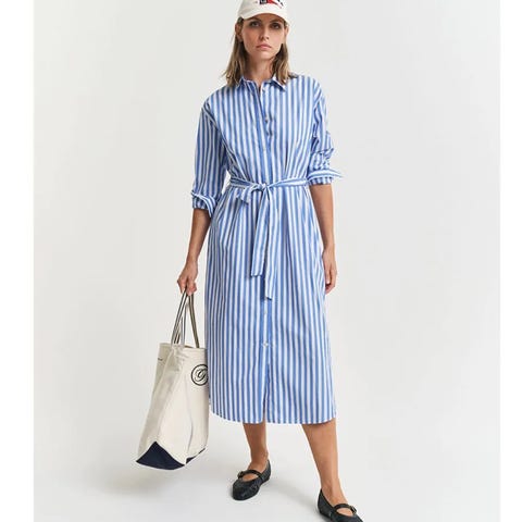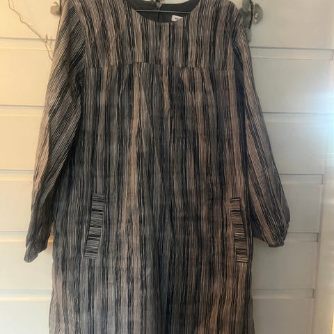 Marimekko Referenssi kjole fra SS25 kollektionen. Kjolen er beige med svarte striper og laget av 100% bomull. Den har korte ermer og krage, og passer til hverdagsbruk. Knapt brukt, fremstår som ny.