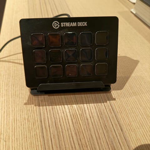 Selger en så å si ikke brukt elgato streamdeck, denne har blitt brukt til macro på simulator spill og har stått fint på bordet.