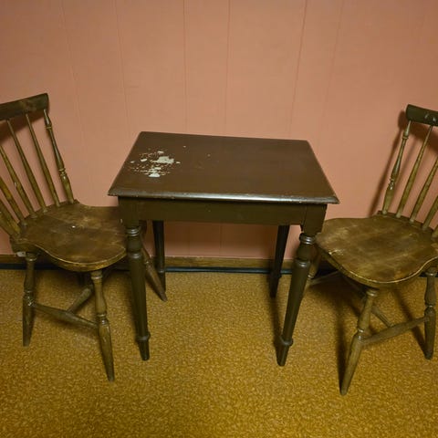 Gammelt trebord som er hvitmalt. Trenger et malingsstrøk om man ikke ønsker «shabby chic»