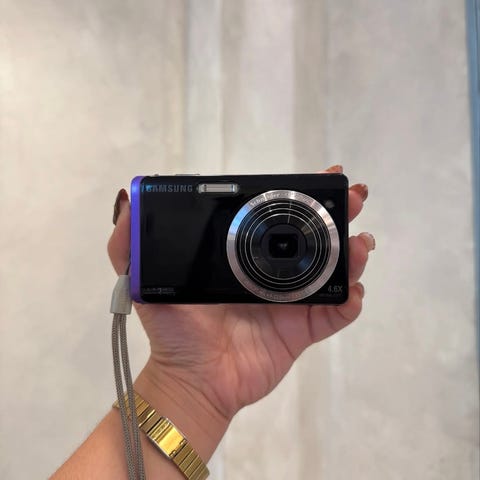 Canon PowerShot Digitalkamera i lilla farge. Kompakt design med innebygd linse og flere funksjoner for fotografering. Egnet for hverdagsbruk og reise. Kan ta både bilder og video. Følger med batteri og lader.