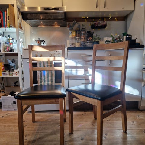 4 stk Pebringe spisestoler, grønn/natur eik.