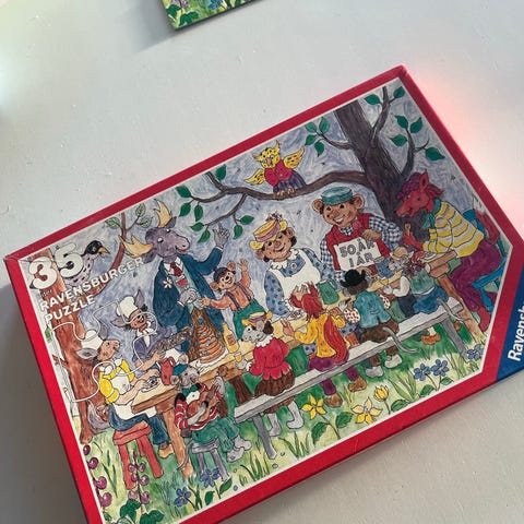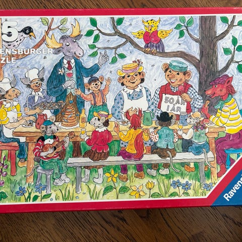 Ravensburger Hakkebakkeskogen puslespill med 3 x 30 brikker. Puslespillet har motiv fra Hakkebakkeskogen med kjente figurer som Klatremus og andre dyr.
