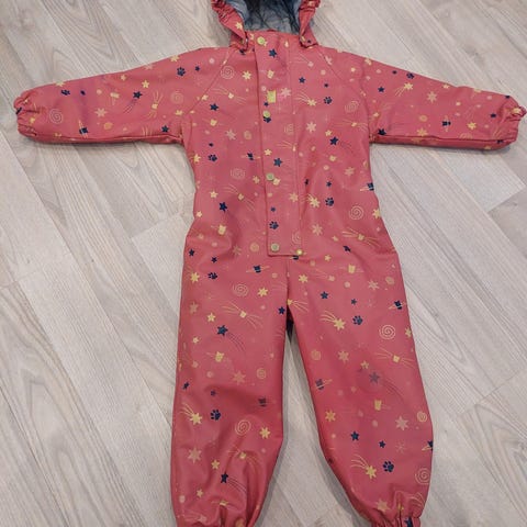 Kattnakken regntøy uten for selges. Er brukt 1 - 1 1/2 sesong. Har ingen hull eller synlig slitasje utenom noen misfarging/falming av fargen på innside av jakken. Har også noen flekker som ikke er prøvd å vaskes bort utenom vanlig skylling 🙈 vil tro de kan fjernes i vask. Strikkene er hele.