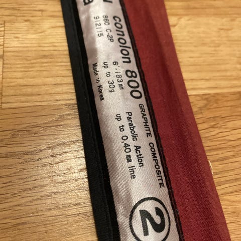 Abu Garcia combo 300 fiskestang med snelle. 2 delt, 2,44m.. Fiskestangen har en svart farge og er utstyrt med snelle og sluk som er montert på stangen.