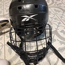 Pent brukt hjelm til skøyter/ishockey. Str small 50-56cm, justerbar.