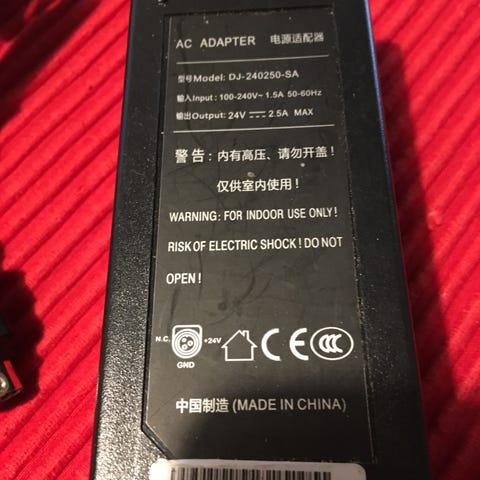 Li-ion Battery Charger Adapter med inngangsspenning 100-240V, 50-60Hz, og utgangsspenning 42V 2.0A. Adapteren er designet for lading av Li-ion batterier og har standard strømkontakt. Produktet har flere sikkerhetssertifiseringer og symboler for korrekt bruk.