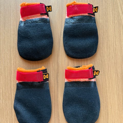 Helt nye potesokker, to av de er såvidt testet ute i snøen. Ble for store for min hund dessverre.