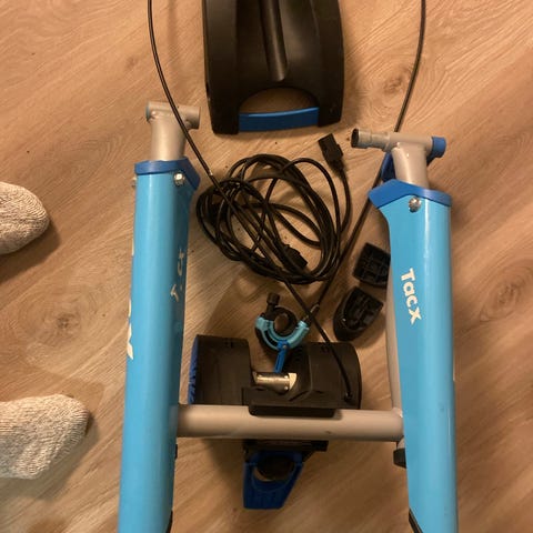 Sykkelrulle fra Tacx selges grunnet overgang til Kickrbike. Fruen ville ha en sykkel vi kan dele på. Rullen fungerer utmerket. Regelmessig i bruk. Kan selges med sykkel som kan sitte på rullen for å spare egen sykkel. Passer til ryttere fra 180-188 ish. Er selv 184 cm høy. Sykkelen er preget av innendørs bruk. Rulle selges for 6000kr. Med sykkel 7000kr.