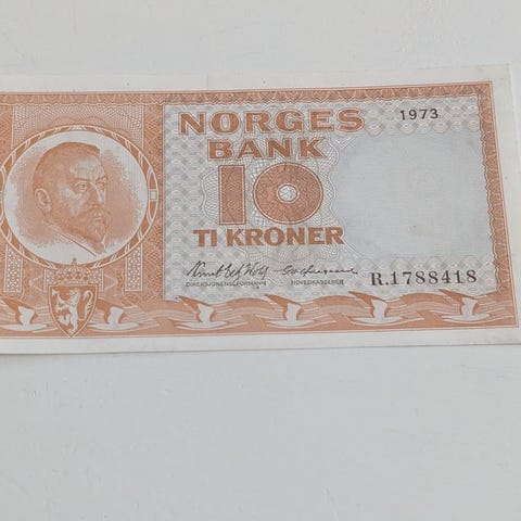 10 kr seddel, Norge 1972 serie L (4225 BW )