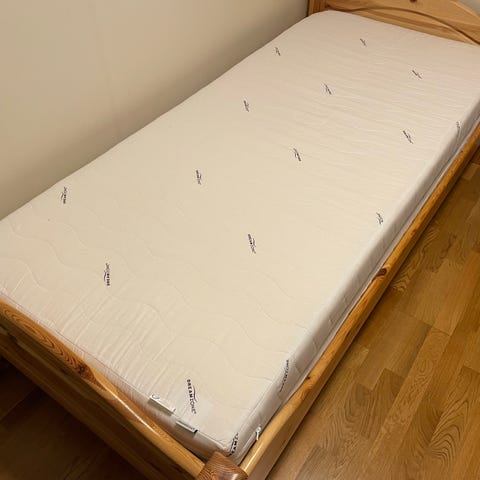 I veldig god stand, kun brukt med madrassbeskytter oppå.