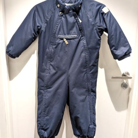 Reima vinterdress, god og varm!, i størrelse 98, brun farge, laget av polyester. Tåler vind, vær og en del vann. Den har elastiske mansjetter ved armer og ben, og stropper ved bena for å sikre god passform.