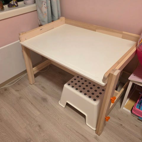 IKEA barnemøbler bord og stoler sett hvit og lys gul