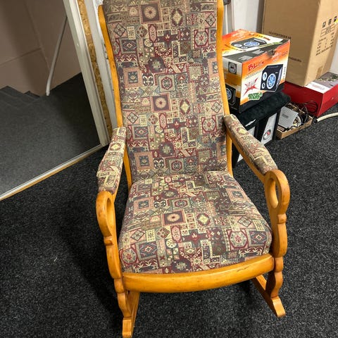 Gammel, vintage gyngestol fra midten av 1850-tallet. Tilhører min oldefar. Fraktet fra Andøya.