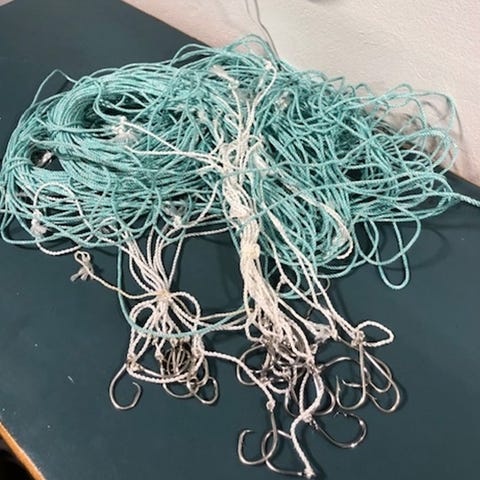 Linekrok med fortom, krok, fiskekrok, forsyn med krok