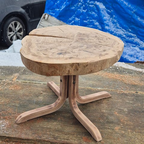 Håndlaget salongbord av EUR paller med glasstopp og svinghjul-låsbart.