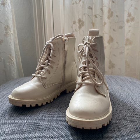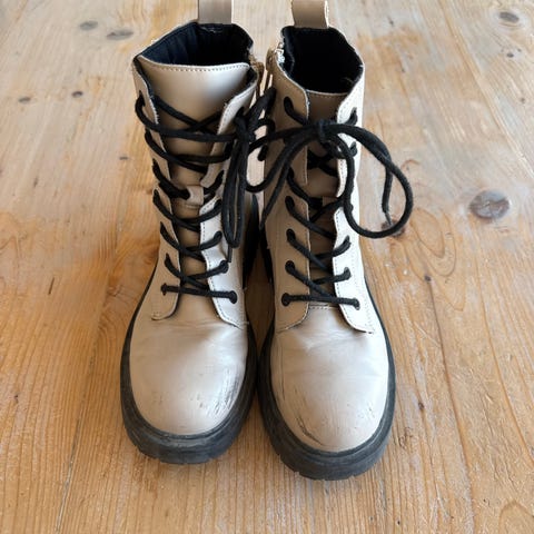 ECCO barnestøvler for jente i størrelse 35. Støvlene er beige og har lisser foran samt glidelås på siden for enkel på- og avkledning. Materialet er skinn