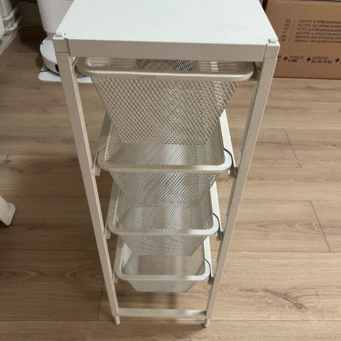 Tralle kjøpt på Clas ohlson for ca 4 år siden. Brukt som tralle til vin o.l så den har stort sett stått stille inntil en vegg.