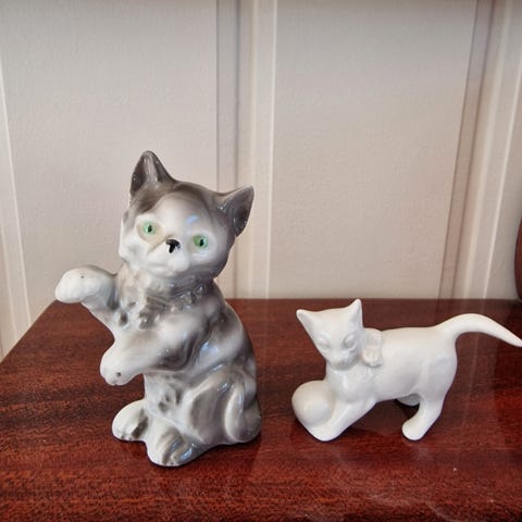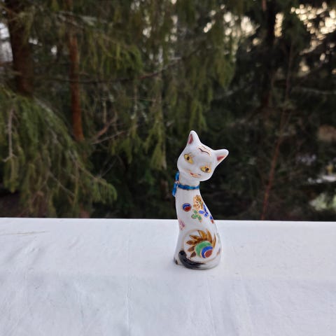 Porselen katt fra 80 tallet