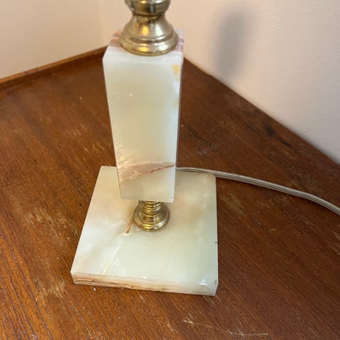 Lampe onyx tror den er fra 1970 tallet. Lampa er 47 cm høy på toppen av lyspæra.