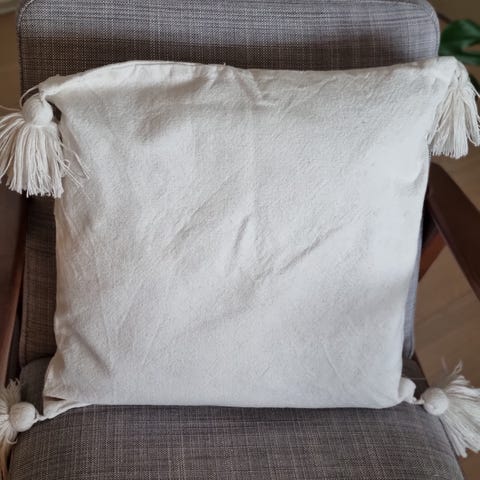 2 Rosa putetrekk i bomullsfløyel. Ny i pakning. Farge tåkerosa. 50x50. Selges til halv pris.