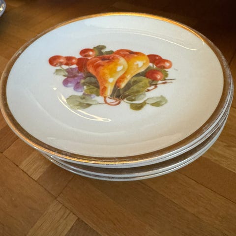 Motivet med duer og rosa rose er håndmodellert og håndmalt som er typisk for Karl Ens’ kvalitetsproduksjon på 1950-tallet.