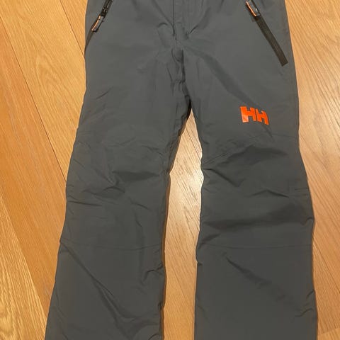 Gode og solide Helly Hansen skibukser (kjøpt i feil str, glemte å bytte de). Str 152, 12 år. Strikk som beskytter mot snø og hekte til sko. Størrelse i livet kan justeres med borrelås. Kjøpt på XXL. Skall: polyamid. Foring: polyester.