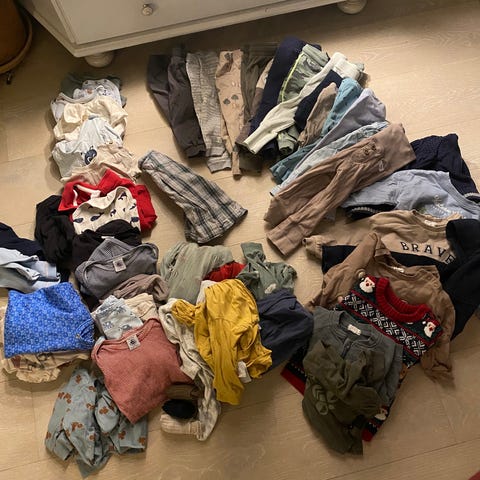 En pysj i 68, og et sett med body og bukse i 80, men alt brukt samtidig!
