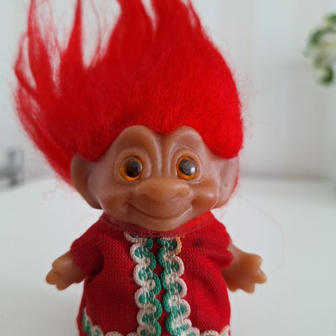 Ulike lykketroll. Det ene er DAM, det er dessverre gamle pennestrøk på undersiden, men ellers er den i god stand.