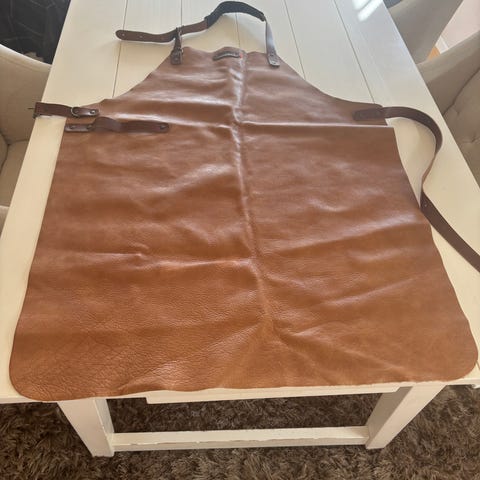 Helt nytt Scania Super 80 grillforkle i ekte skinn, med hansker med klassifisering EN-407:2020 godtkjent for varmearbeid.
