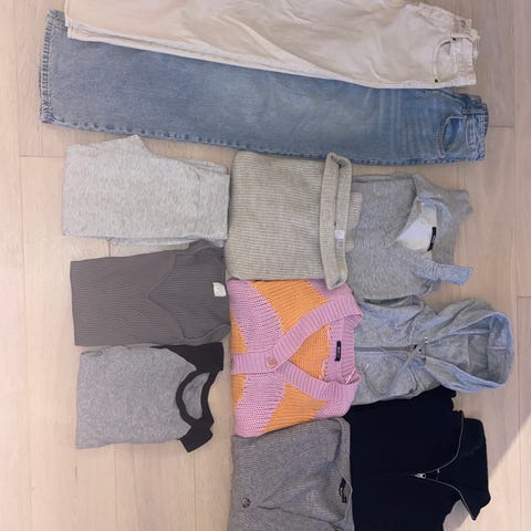 7 plagg til sammen. Selges helst samlet. H&M, Morgan ogsv. Røykfritt og dyrefritt hjem. Alt i str. Xs bortsett fra skjørt.