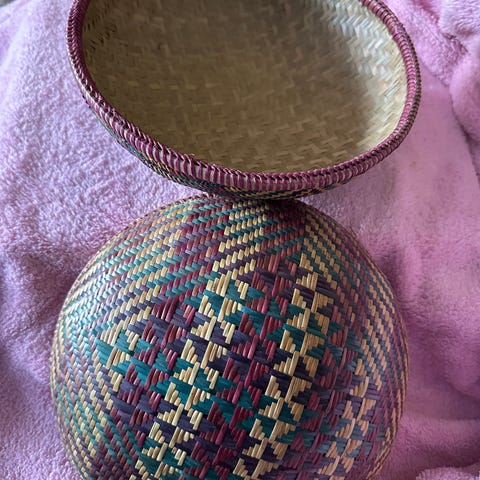To deler klemmes sammen - den ene halvdelen er litt mindre enn den andre. Så lukker man maten inne. De bruker den tradisjonelt som tallerken til mat, men brukes ofte til å bære kokt mat ( ris/kjøtt) på lange reiser eller når de skal jobbe på jordene. Ca 22 cm i diameter.