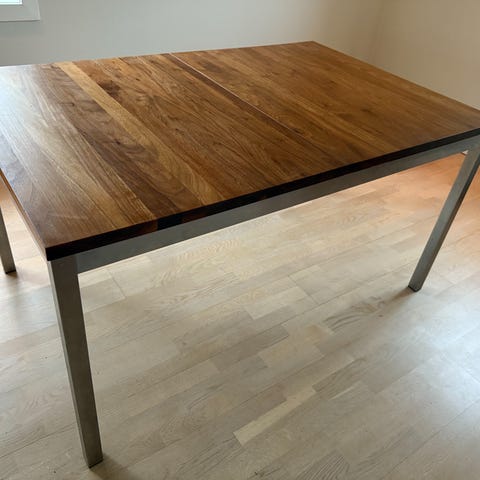 Selger et Nordic spisebord fra Bolia billig. Det er heltre av valnøtt og har blitt oljet jevnlig. Fremstår fremdeles pent med få skader.
