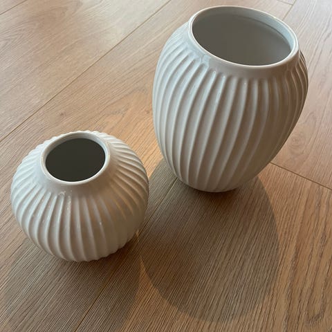 Kähler keramisk vase i grønn farge. Vasen har en ribbet overflate og en blank finish. Egnet for dekorative formål eller som blomsterholder.