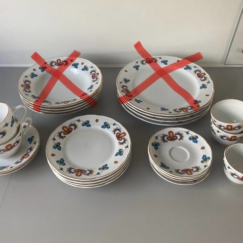 Porsgrund bondeservise som er kjøpt på Hadeland glassverk en gang i tiden. Jeg selger to serveringsfat.