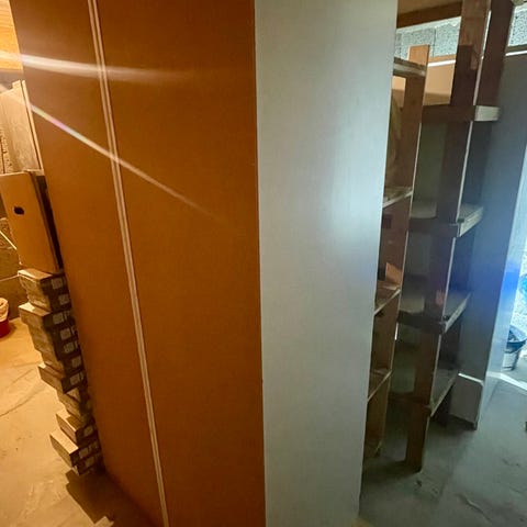 Gir bort skap med glassdører og praktiske hyller