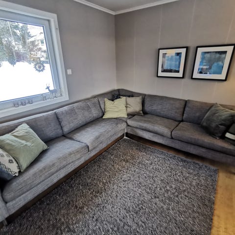 Grå hjørnesofa. Godt brukt.
