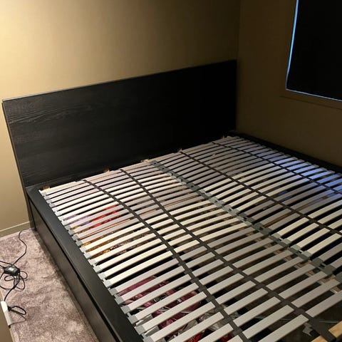 Godt brukt og litt slarkete, men med litt omsorg er det mye seng igjen. To store skuffer med oppbevaring. Kan trekkes ut tildobbelseng.