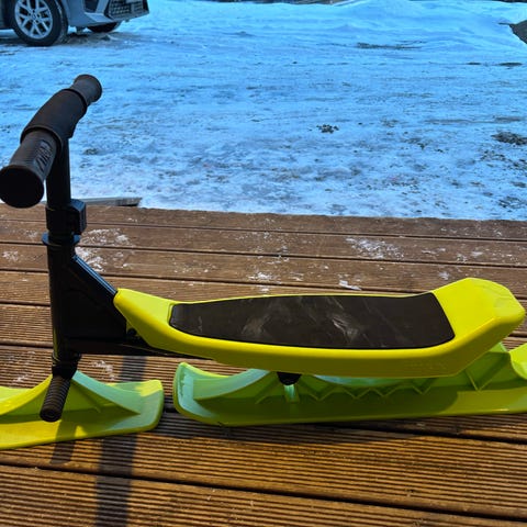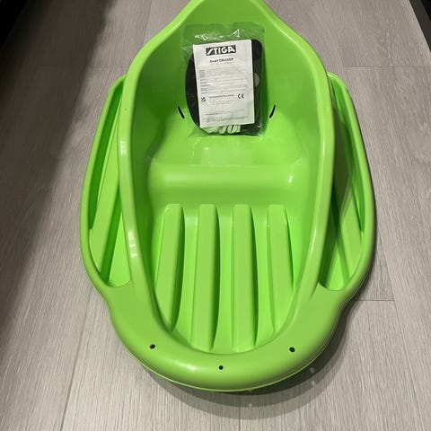 Stiga snowracer rattkjelke. Designet for vinterlek og kjøring i snø, egnet for barn. Utstyrt med styring via ratt og bremsesystem for kontrollert kjøring. Pent brukt, fremstår i meget god stand.