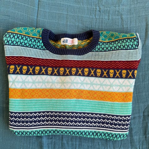 FUB Genser barn str 122/128 rød/beige stripet i bomull unisex